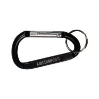 - This medium carabiner has a split ring attachment for keys and clips on to bags, backpacks? and other items.